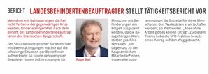 Holger Welt hat heute zum Thema „Menschen mit Behinderungen“ und zum Jahresbericht des Landesbehindertenbeauftragten in der Bremischen Bürgerschaft gesprochen.